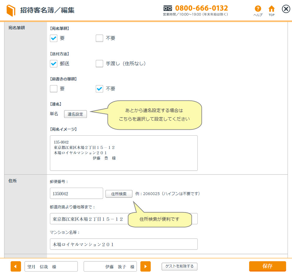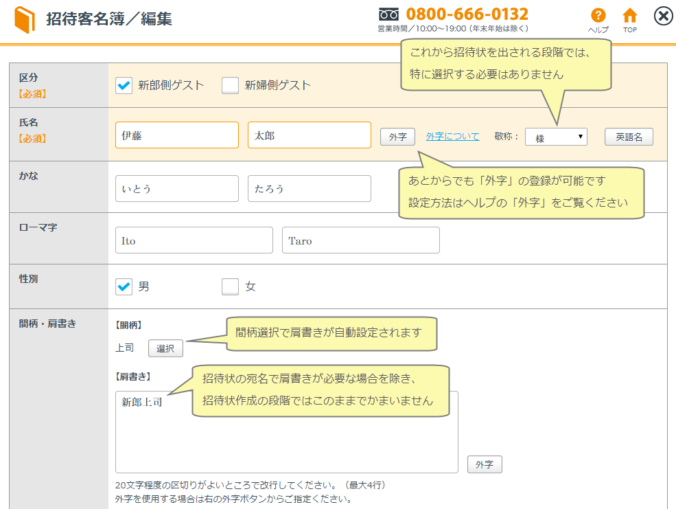 ゲストの漢字があとから「外字」であることがわかった場合でも、設定・登録ができます。失礼のないように正しい漢字を設定・登録しましょう。