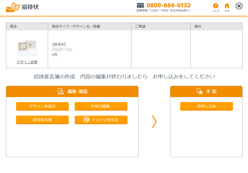 【お申し込み】・・・デザイン選択と内容の編集後にお申し込みください。結婚式場の担当者が内容を確認してから印刷会社に手配いたします。