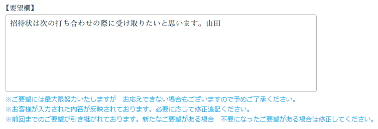 招待状の印刷と納品にあたり、結婚式場や印刷会社へのご要望がありましたらご記入ください。