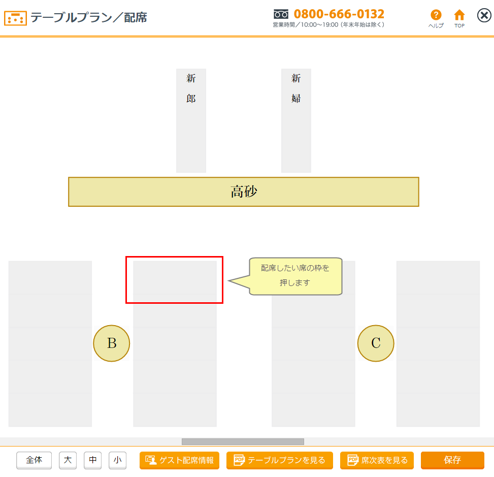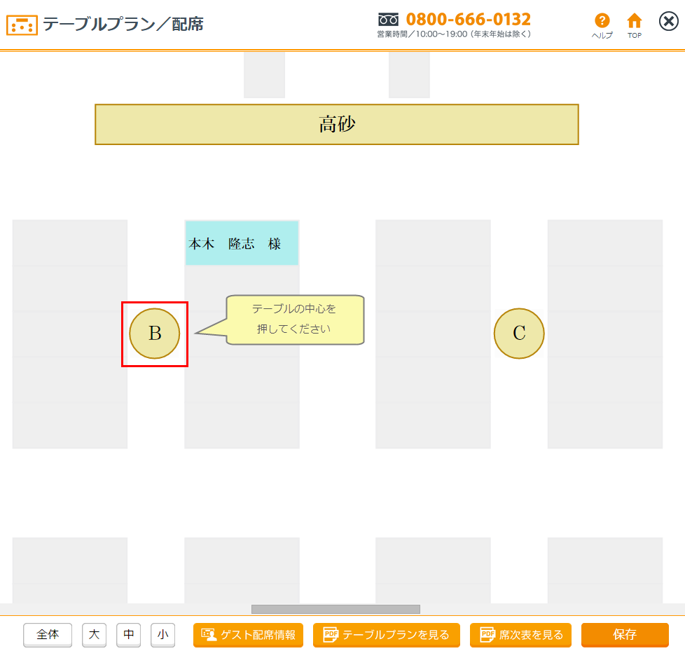 テーブルプランを確認する場合は必ず「保存」を押してから「テーブルプランを見る」を選択してください。