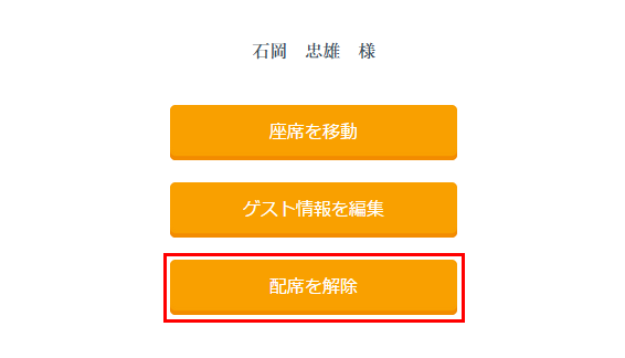 ※配席解除したゲストは削除にはなりません。再度配席することが可能です。