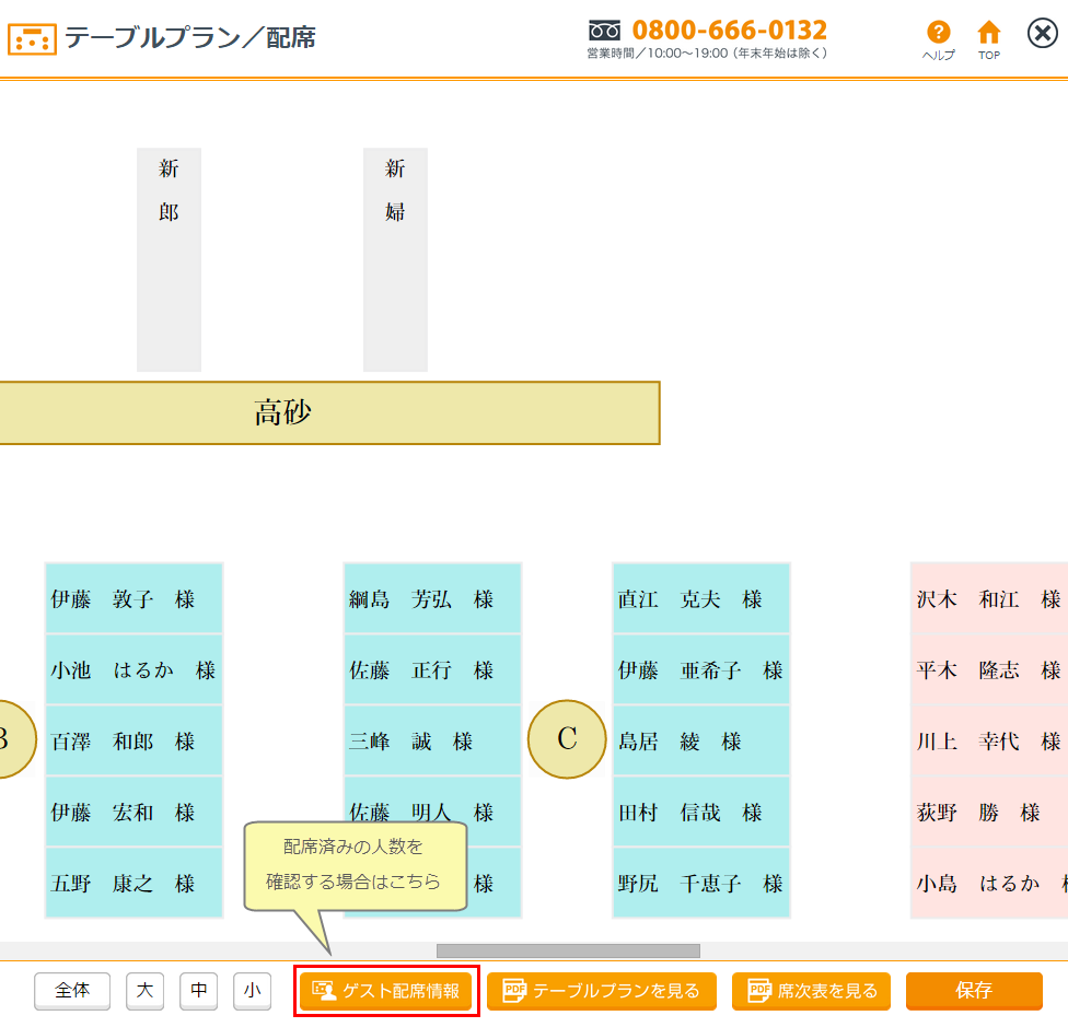 ※配席を変更した場合は保存後に再度取得することで最新のものが確認できます。