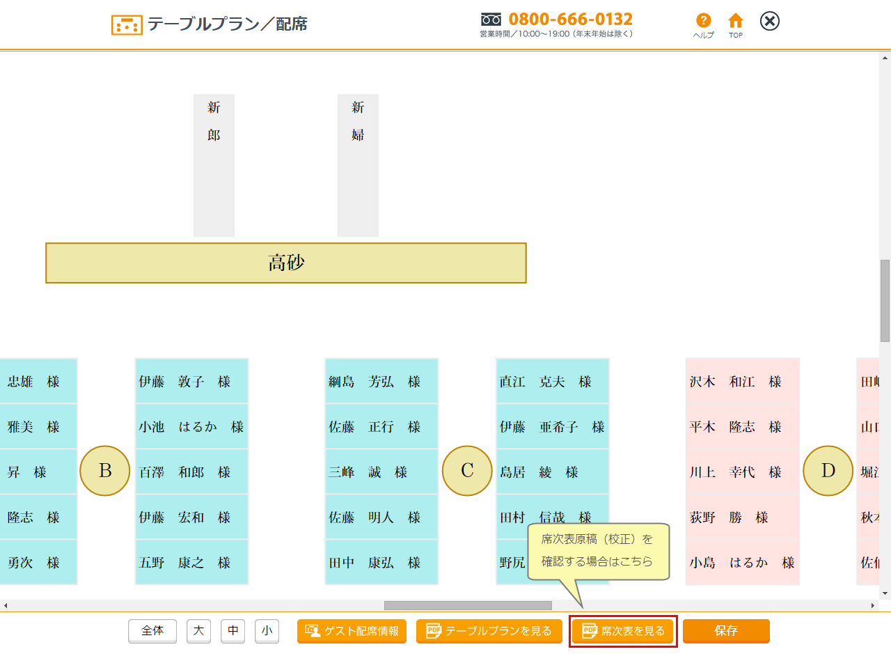 ※席次表校正はPDFで開きますのでプリンターで印刷が可能です。印刷する場合は「高画質」または「高精細」モードで印刷することをおすすめいたします。