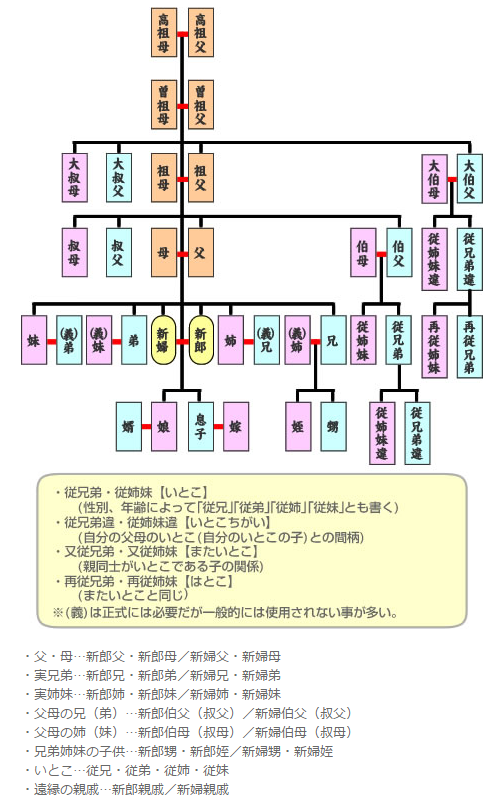 親戚の肩書きについては下記の図をご参考にしてください。