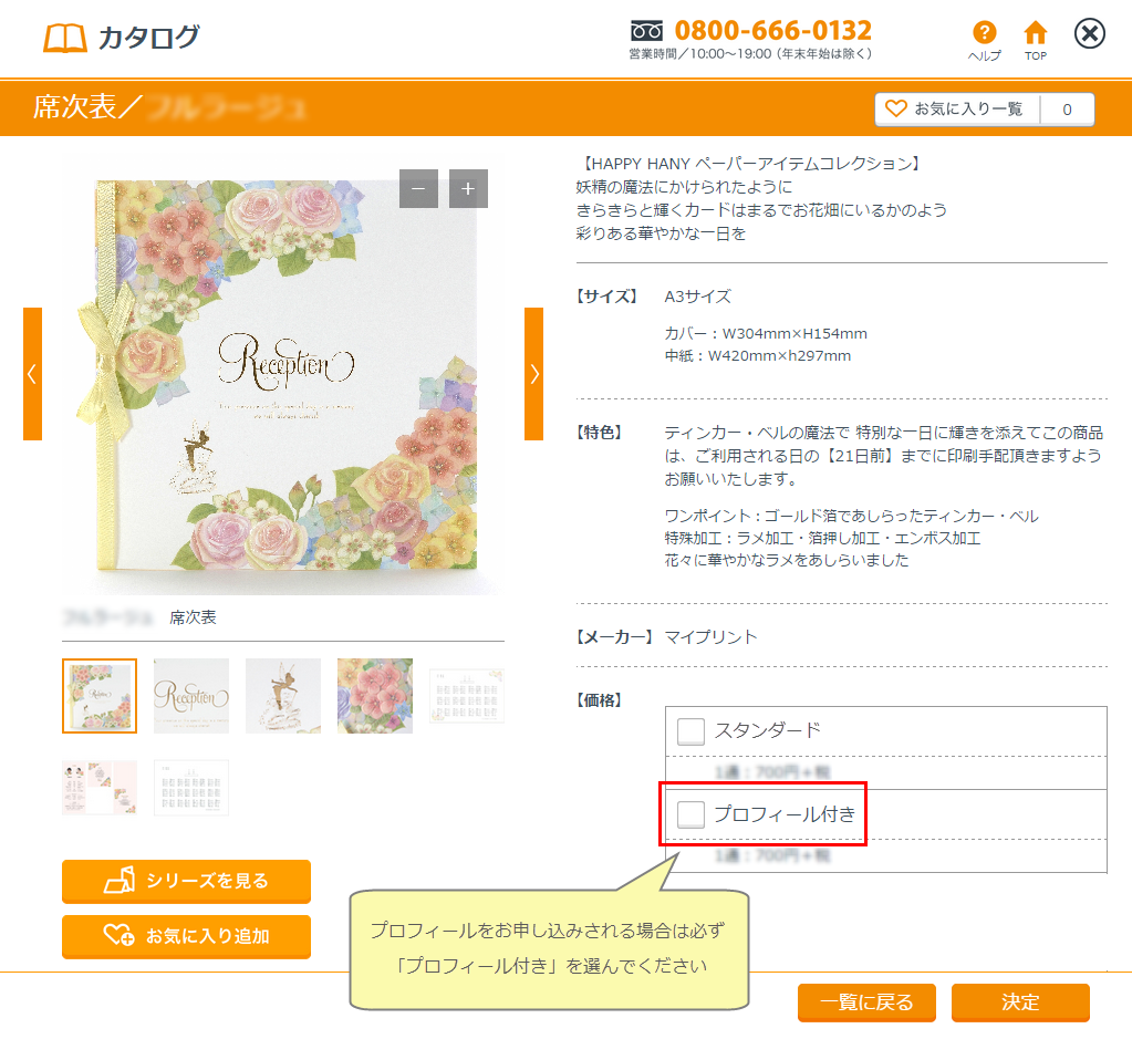 ※プロフィールは、席次表と同時のお申し込みとなります。プロフィールのみのお申し込みはできませんので、ご了承ください。