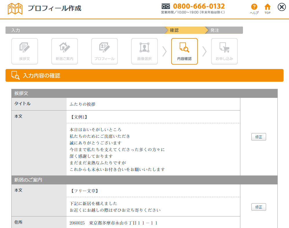 入力内容を確認したら、お申し込みを行ないます。その後、担当者が確認後に印刷会社に校正(印刷前の下刷り)を依頼いたします。