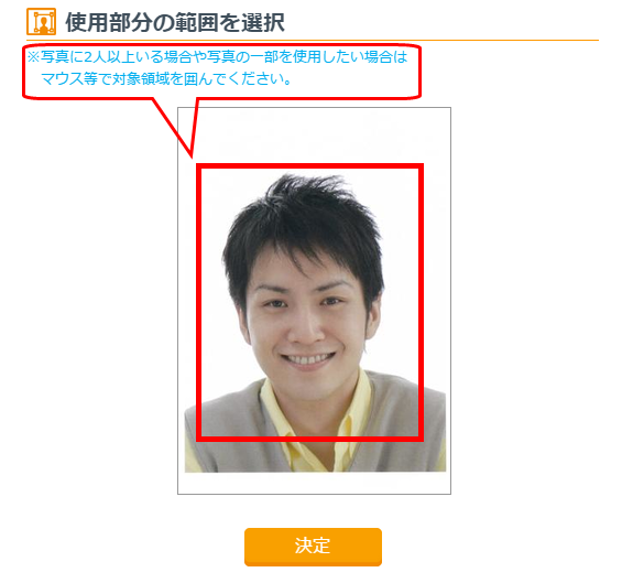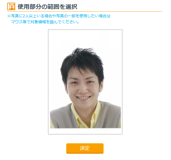 お手持ちの写真データを利用されるときは「写真を入れる」にチェックが入っていることを確認し、「アップロード」を押してください。「参照」ボタンを押して写真データを選択したら「登録開始」を押してください。
