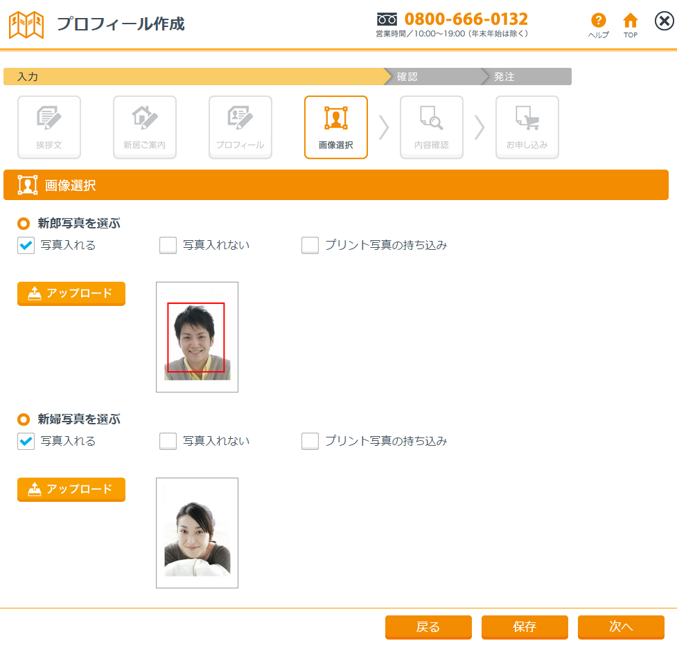 おふたりの写真の登録が完了したら次へすすめてください。