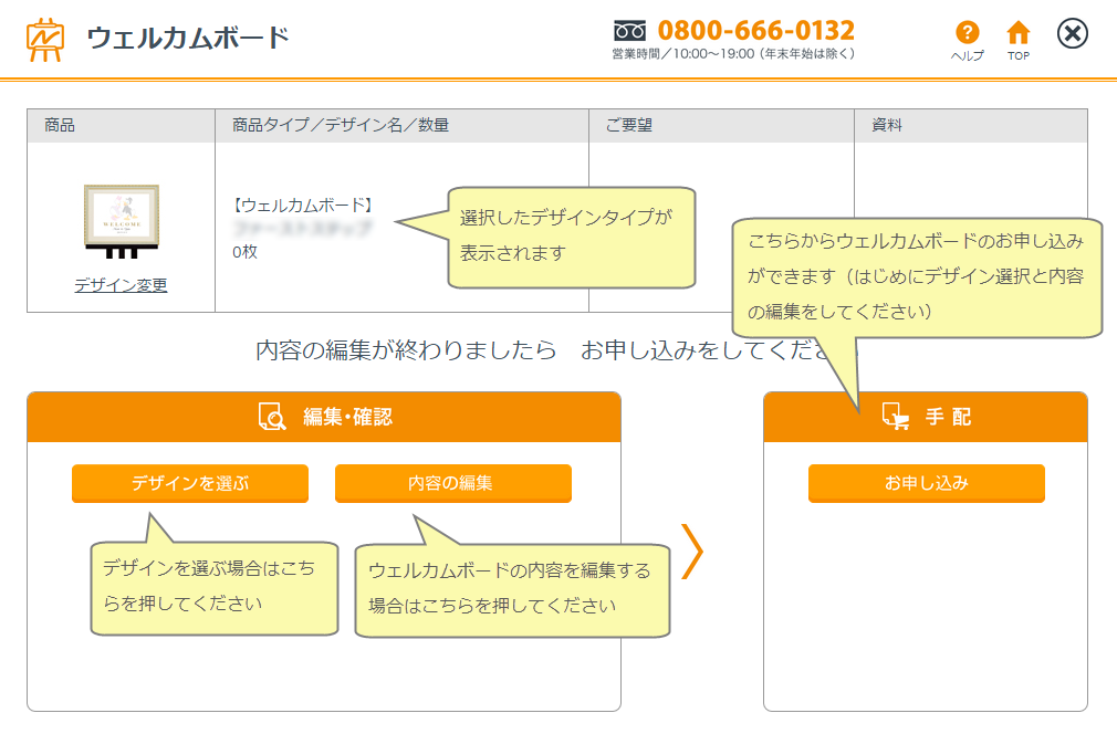 ①デザインの選択②ウェルカムボード内容の入力③ご注文枚数とご要望の入力④お申し込み⑤担当者による内容の確認。⑥印刷※ウェルカムボードは校正(印刷前の下刷り)の確認はございません。担当者が確認後、印刷に手配をいたしますので、入力内容はは十分に確認してください。