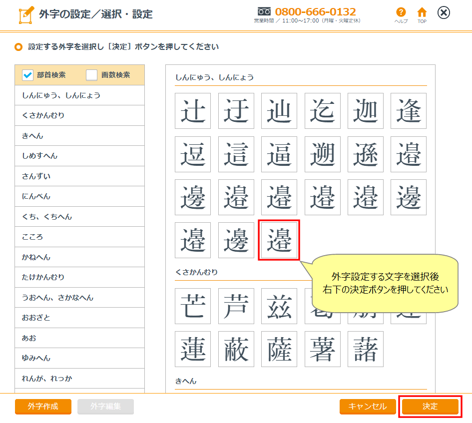 ・外字の箇所が常用漢字で登録できない場合、ひらがな(カタカナ)で登録