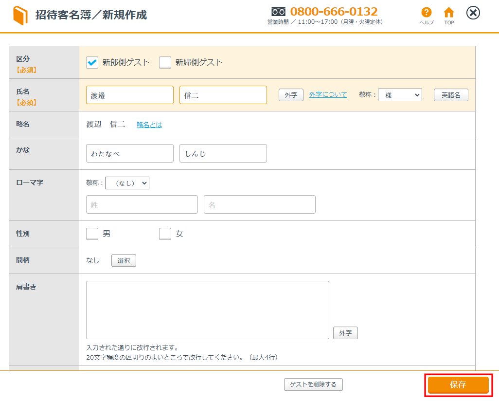 ゲスト登録(編集)画面に戻り、右下の「保存」を押して設定完了です。
