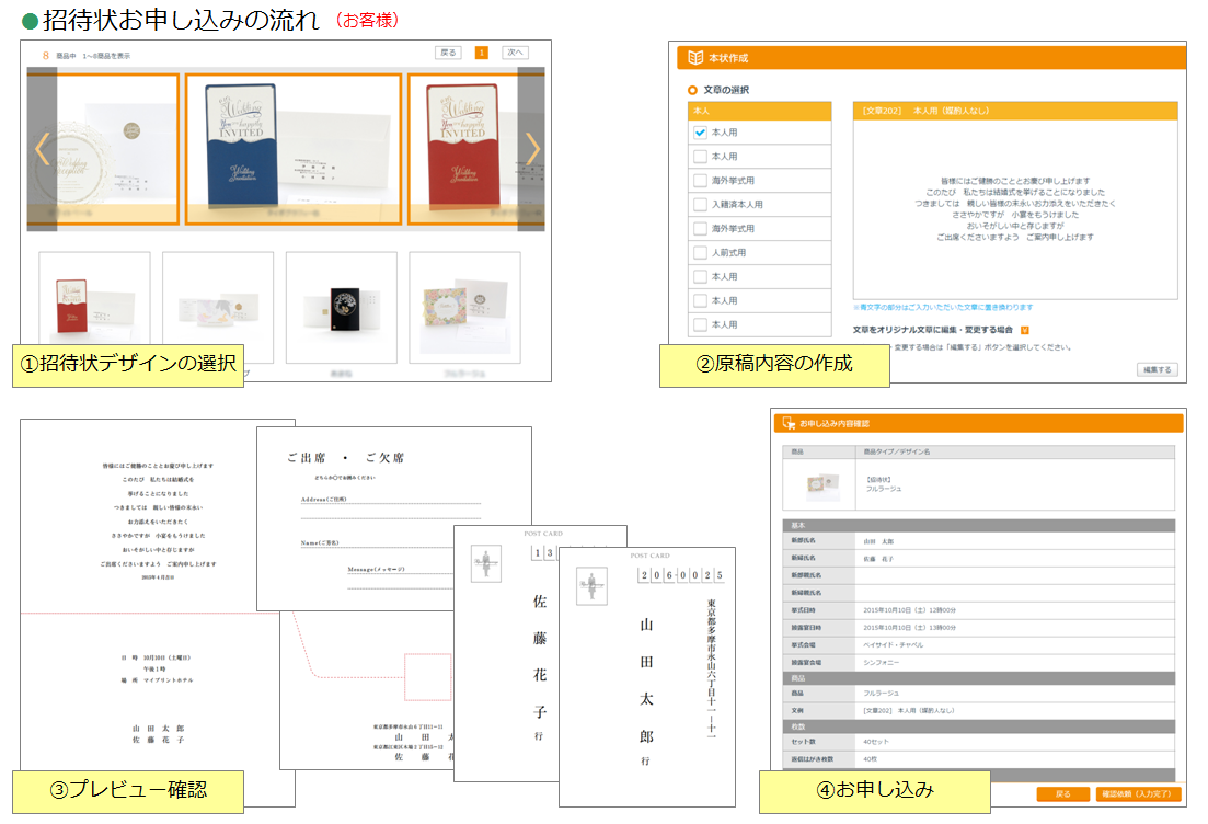 お客様の招待状作成の流れは下記の通りです。お申し込み後はご担当にメールでご連絡が届きます。