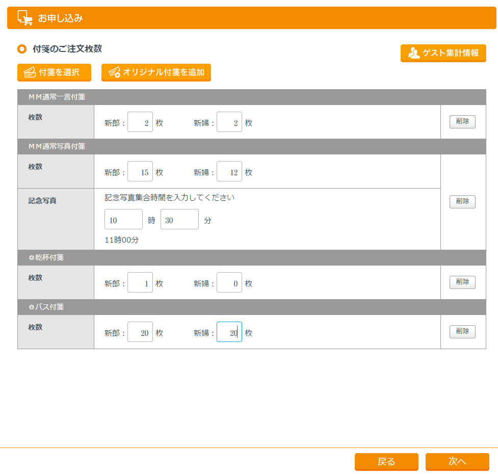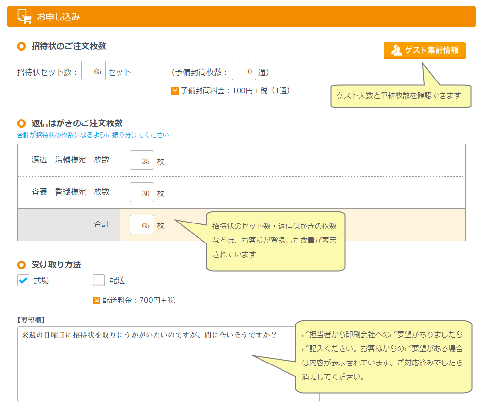 招待状のセット数などを確認してください。